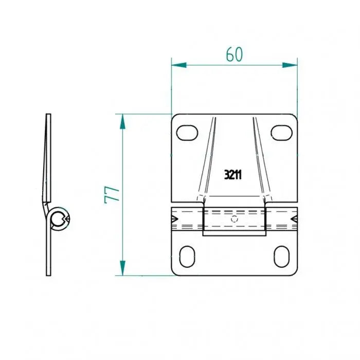 La charnière centrale ST3V / KIRigato assure une liaison solide entre les panneaux et garantit un mouvement stable de la porte sectionnelle. Fixée directement sur le vantail, elle est percée d'un trou de 45 mm d'entraxe pour un alignement précis. Grâce à sa surface galvanisée, la charnière reste résistante à la corrosion même dans des conditions d'utilisation exigeantes.
