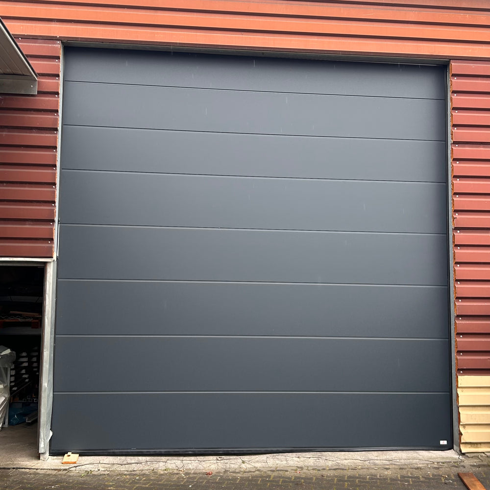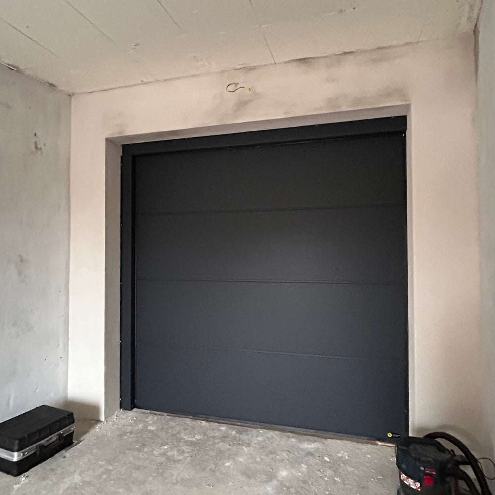 Porte de garage Design-Line Antra RAL 7016 Gris anthracite | Porte sectionnelle haut de gamme avec motorisation TS100, 2 télécommandes et interrupteur mural